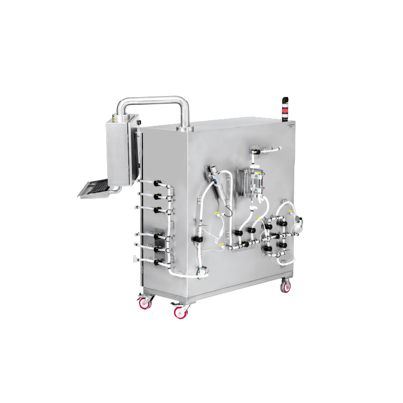 The control unit uses a simple, user-friendly interface via the touchscreen for data input and programming commands. The system is shielded from unauthorized access with password protection (four levels), and all events and actions (alarms, process steps, manual commands, etc.) are recorded in accordance with cGMP guidelines. The program allows you to operate the system manually or automatically.The automatic mode has: